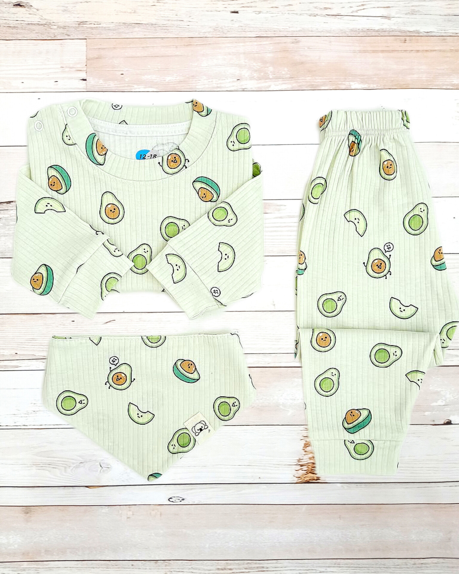 ۹ـ۱۲ماه:پهنا ۲۸/قد ۲۹/آستین از کنار یقه ۲۸/شلوار ۴۲