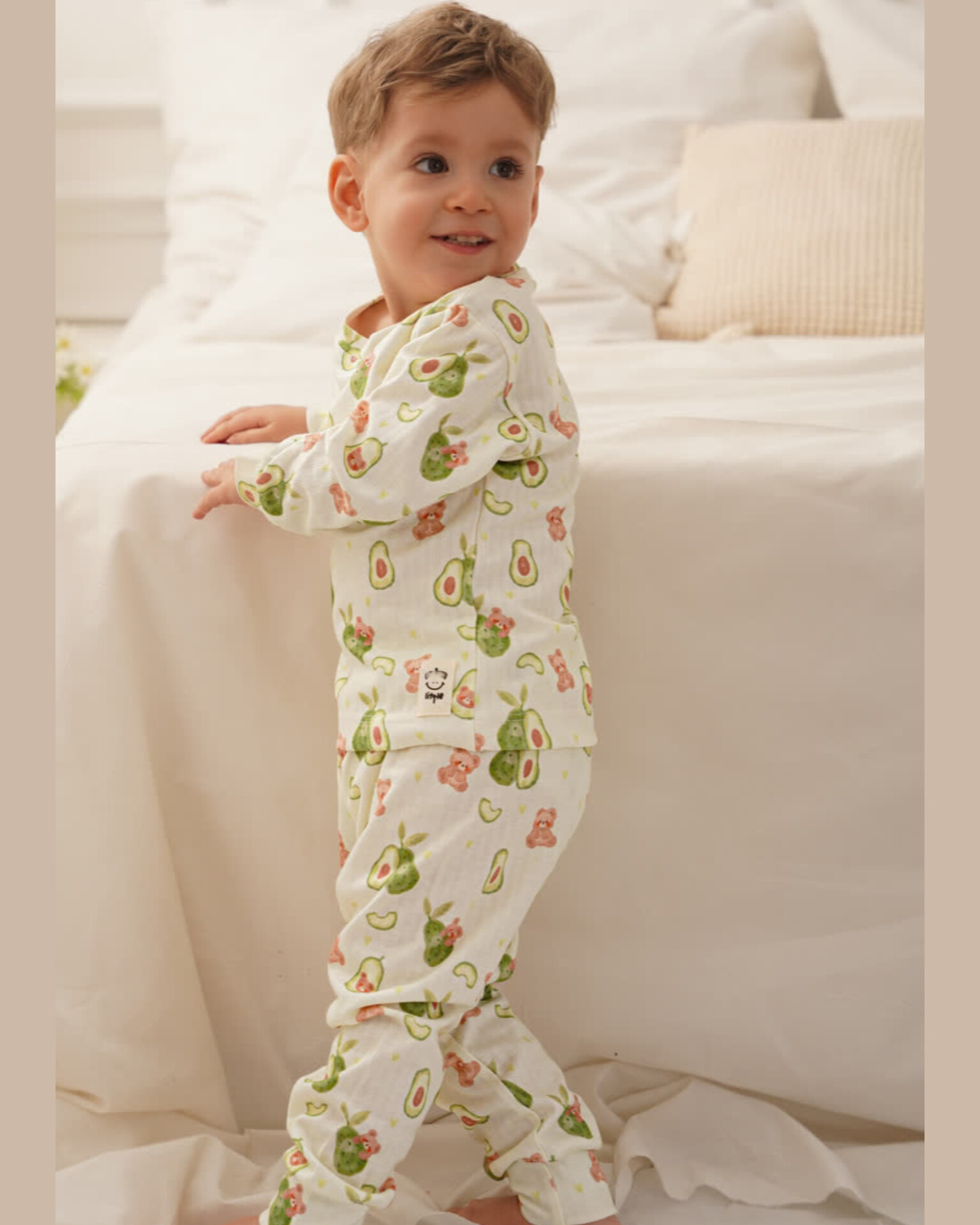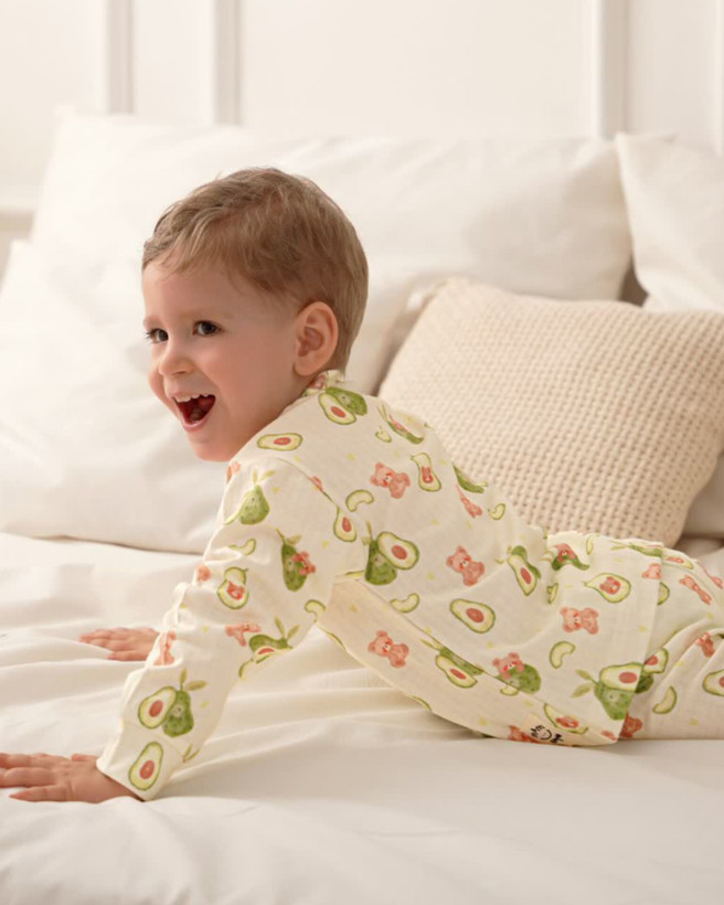 ۹ تا ۱۲ ماه : پهنا ۲۹| قد ۳۲| آستین ۲۵| شلوار ۴۳ | ران ۳۲