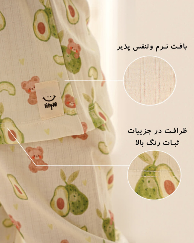 ۶ تا ۹ ماه : پهنا ۲۷| قد ۳۰| آستین ۲۵| شلوار ۴۰ | ران ۳۰